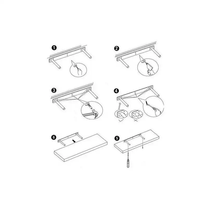 Système de fixation caché : L'étagère est fixée au mur via des fixations spéciales ce qui permet de masquer les vis et supports. L'effet visuel est donc celui d'une étagère suspendue sans aucune fixation visible.