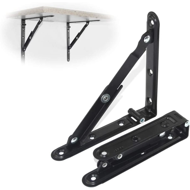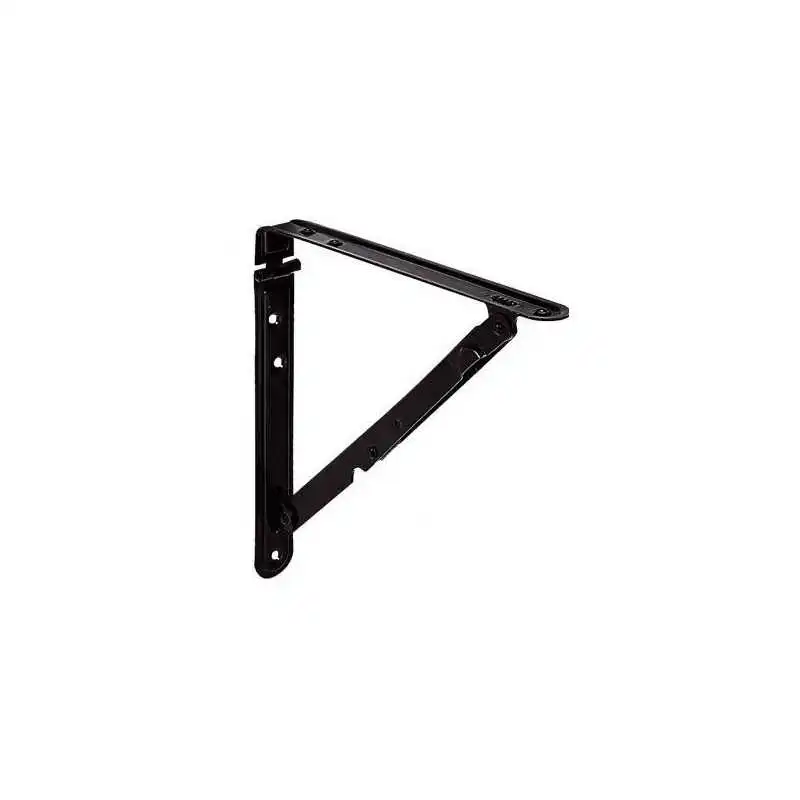 Cette équerre est très pratique pour la création d'une étagère murale. Pliable, elle permet de replier la tablette contre le mur. Cette équerre noire a des dimensions de 30 x 30 cm.