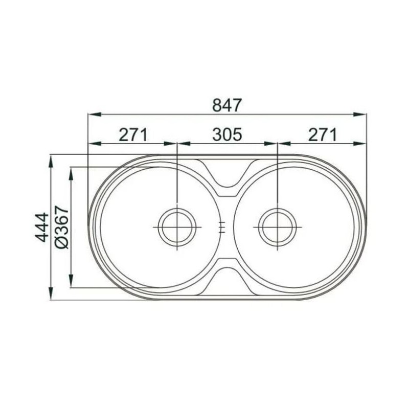 Evier monobloc avec deux cuves arrondies pour l'encastrement. Mesure externe 847x444mm Bols de mesure Ø367xØ367mm Profondeur 145mm Paquet Boîte individuelle Taille du cabinet 900mm INSTALLATION EN ENCART Installé au-dessus du plan de travail, selon un plan de découpe préparé, c'est l'un des types d'installation les plus conventionnels, où un petit bord profilé apparaît sur le plan de travail.