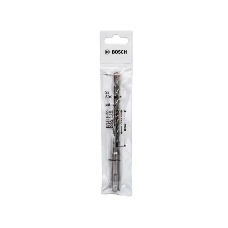 Le foret SDS plus-1 est optimisé pour le forage du béton. Sa plaque en carbure de tungstène à 2 couteaux rend la mèche très résistante tandis que sa conception de flûte en forme de U à 2 cannelures offre une élimination efficace de la poussière et une durée de vie standard. Le foret est destiné à être utilisé sur la maçonnerie et le béton. Il est compatible avec tous les marteaux perforateurs avec support SDS plus. -Diamètre (D) mm 8,00 -Longueur de travail (L1) mm 100 -Longueur totale (L2) mm 160