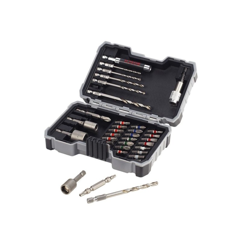 Coffret contenant : forêts CYL, douilles, embouts de vissage et porte embouts - Nouveaux sets mixtes vissage et forage conçus pour les perceuses et visseuses, et pour le travail de la maçonnerie.