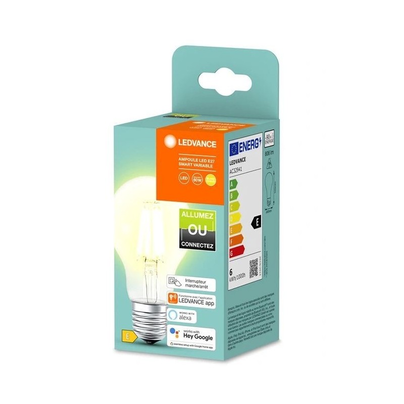 LAMPE LED CONNECTÉE SMART AVEC BLUETOOTH 6W LUMIÈRE BLANC CHAUD 2700K E27 OSRAM LEDVANCE