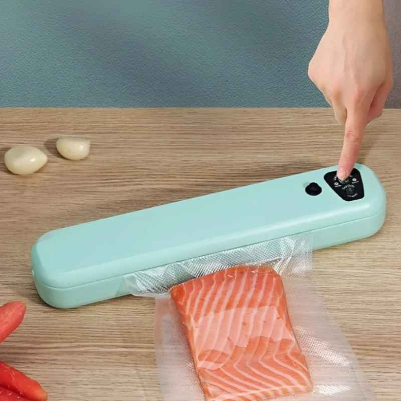 Machine à sceller sous vide pratique et compacte, idéale pour conserver vos aliments plus longtemps en gardant toute leur fraîcheur, livrée avec 5 sacs prêts à l’emploi.