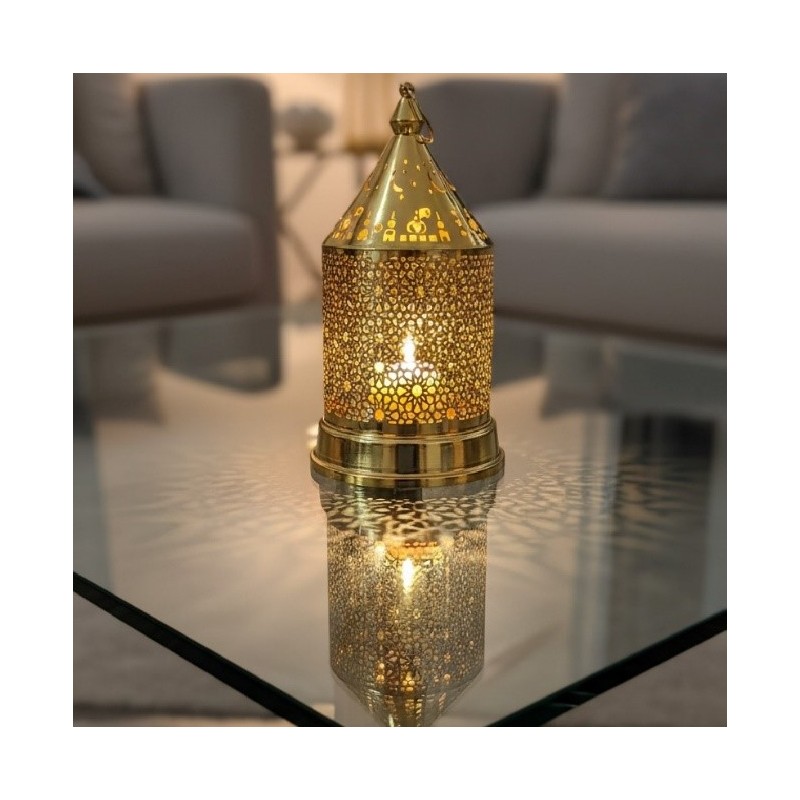 Son design raffiné en métal doré apporte une touche d’élégance orientale à votre intérieur, parfaite pour sublimer vos soirées, vos tables ou votre coin prière.