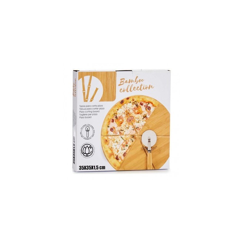 PLANCHE À PIZZA RONDE EN BAMBOUAVEC CUTTER Ø35CM KINVARA