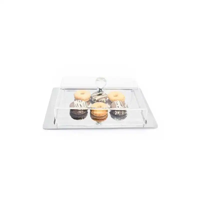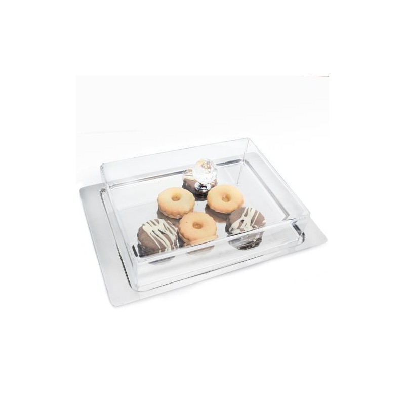 -Ce plateau rectangulaire avec cloche plexiglass est parfait pour tous les types de gâteaux, fromage, salami, coupes, papier mâché, etc.