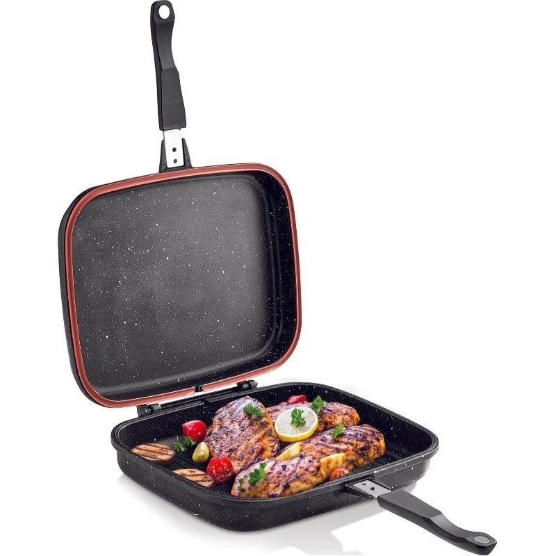 POÊLE GRILL DOUBLE FACE NOIRE 34*25*6 CM KORKMAZ