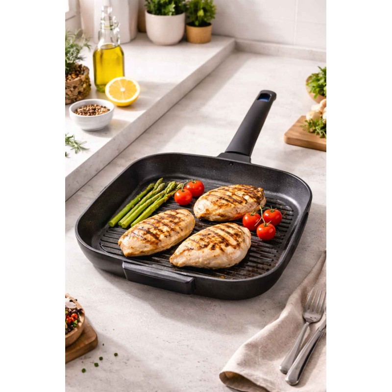 Le grill carré est conçu avec un revêtement anti-rayures ultra résistant qui garantit une cuisson homogène sans accrocher.