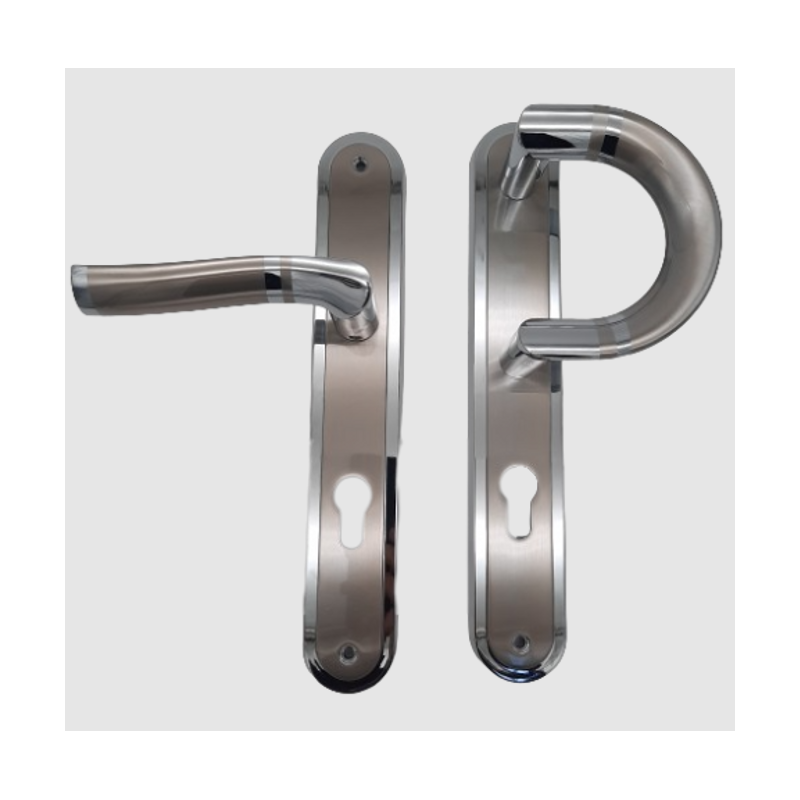 Système poignée de tirage extérieure + poignée levier intérieure, parfait pour les portes d’entrée sécurisées.