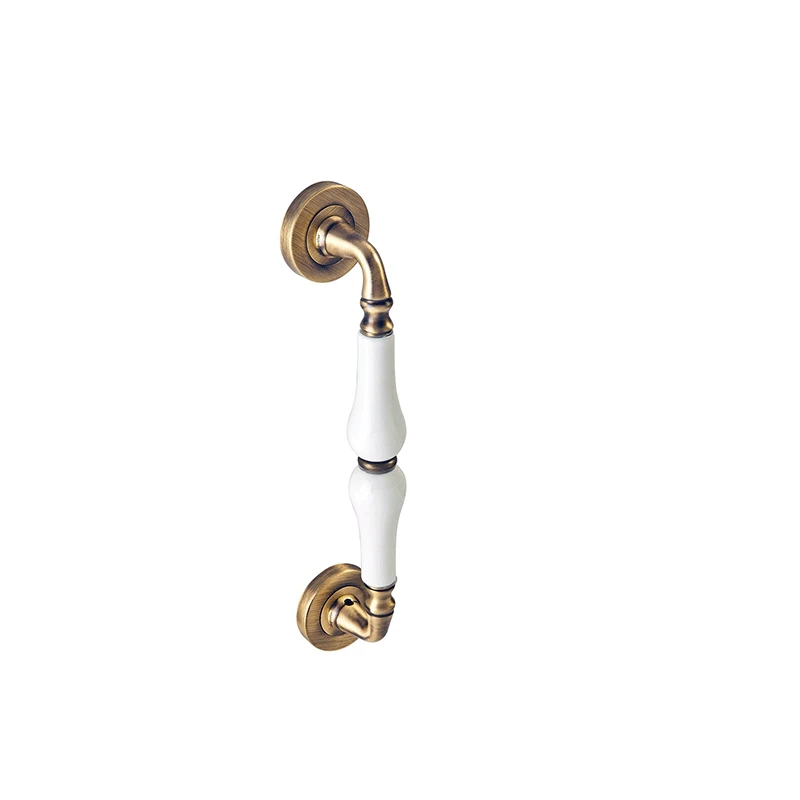 La poignée de tirage Bahar en porcelaine blanc sur laiton, une combinaison de matière noble qui ajoute luxe et élégance à votre porte d'entrée.