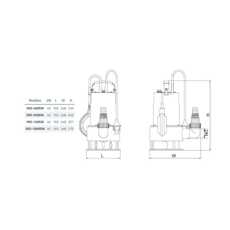 POMPE DE RELEVAGE INOX POUR EAUX USÉES XKS400-SW 0.5 CV LEO