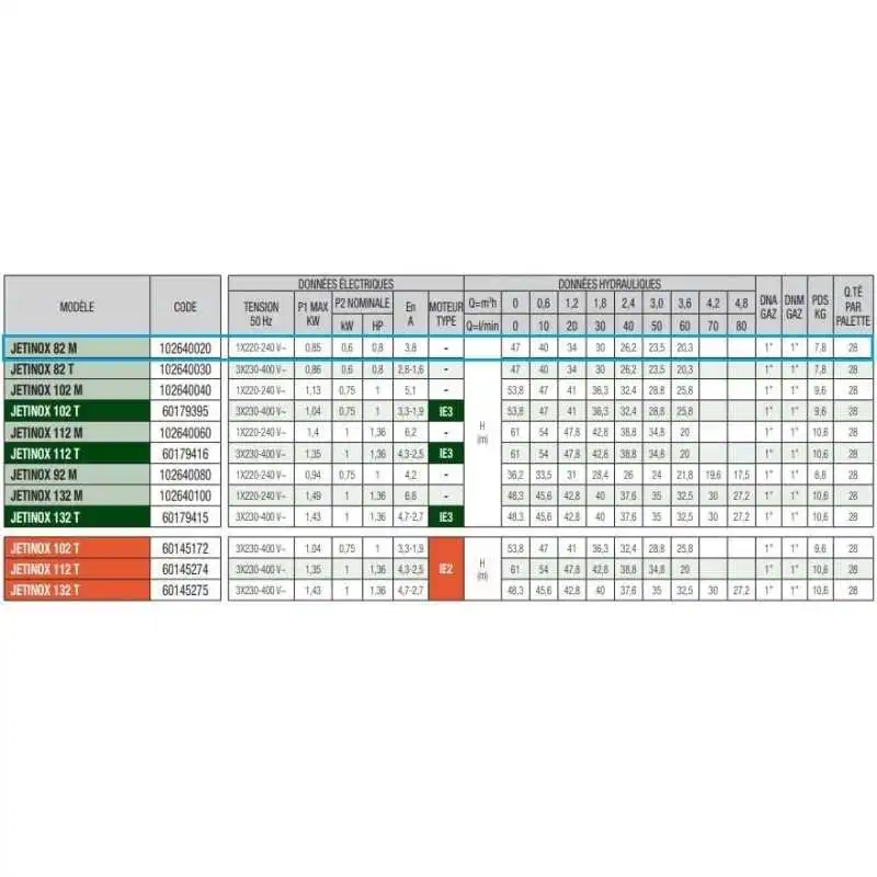 POMPE JET INOX 82 MONOPHASÉ 0.8HP DAB