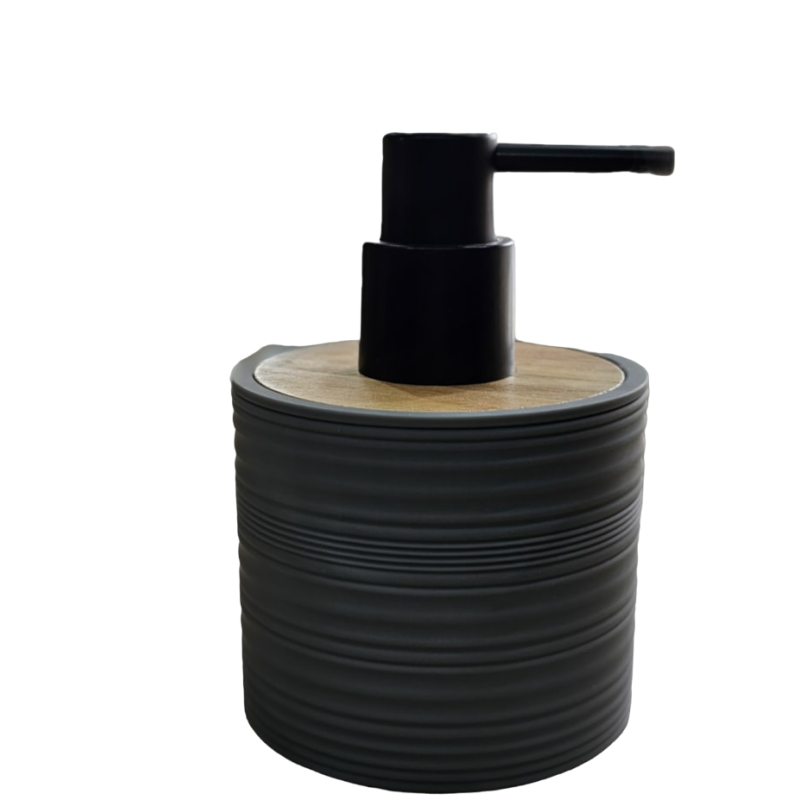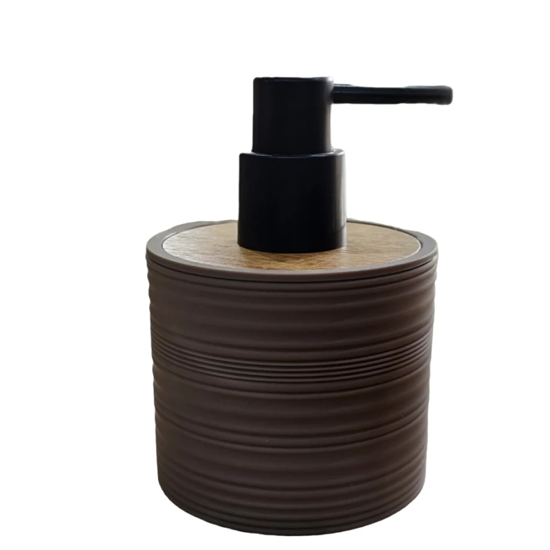 -Ajoutez une touche d'élégance à votre salle de bain ou votre cuisine avec notre mini distributeur de savon liquide en plastique, doté d'un couvercle effet bois.