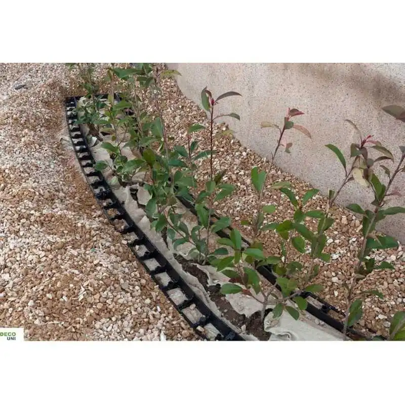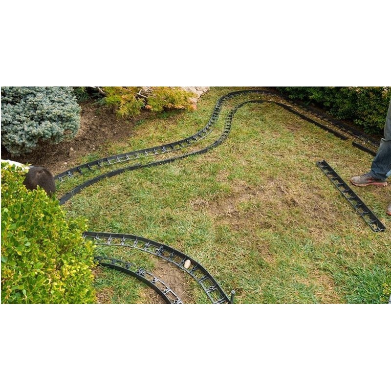 -Une bordure multifonctionnelle, elle permet de délimiter rapidement et facilement les plantations, le gazon et les galets.