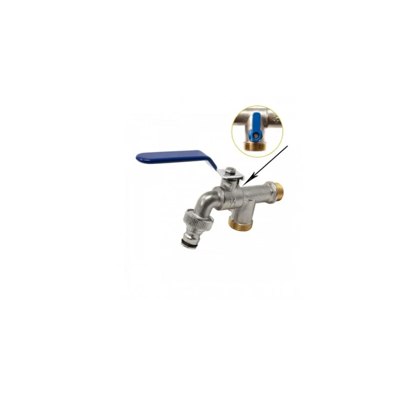 ROBINET DE JARDIN LAITON DOUBLE SORTIE 1/2"x3/4"x 3/4" SAP