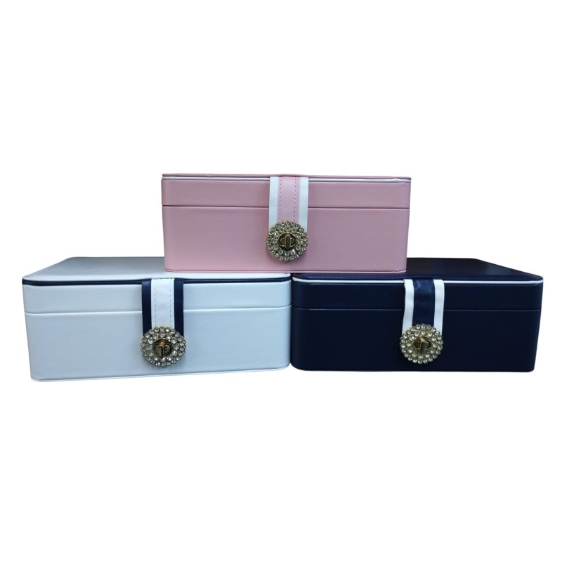 Cette boîte à bijoux spacieuse aide à organiser tous vos bijoux : crochets sur le couvercle pour les longs colliers, la couche amovible pour les boucles d'oreilles, les clous et les bagues et la couche inférieure est idéale pour les montres et les bracelets.