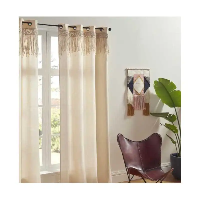 -En 100% coton et décoré d'une frise en macramé, le rideau "Rituality" apportera une touche résolument bohème à votre intérieur.