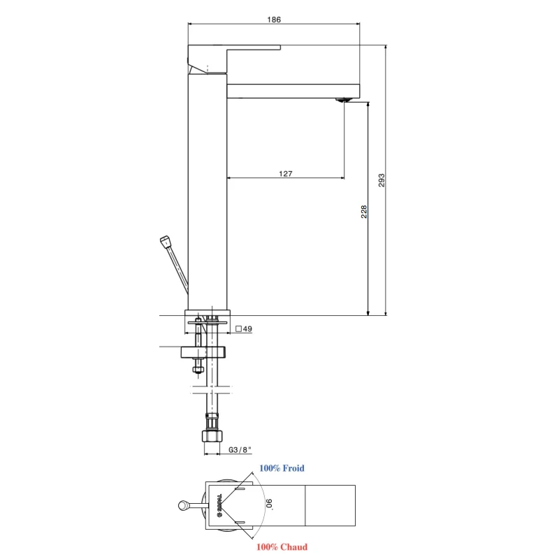 Équipé d’une cartouche en céramique avec système d’économie d’eau,