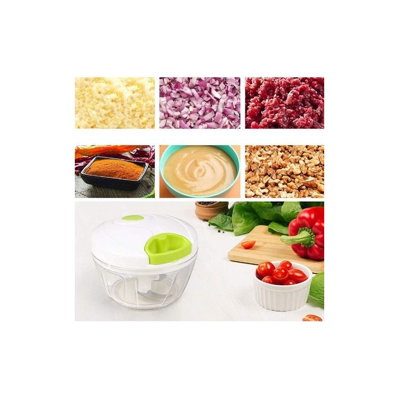 -Largement utilise il peut hacher presque toutes sortes d'aliments tels que les légumes, la viande, les fruits, les oignons, la laitue, les herbes, les carottes, les oignons, l'ail, le piment, etc.