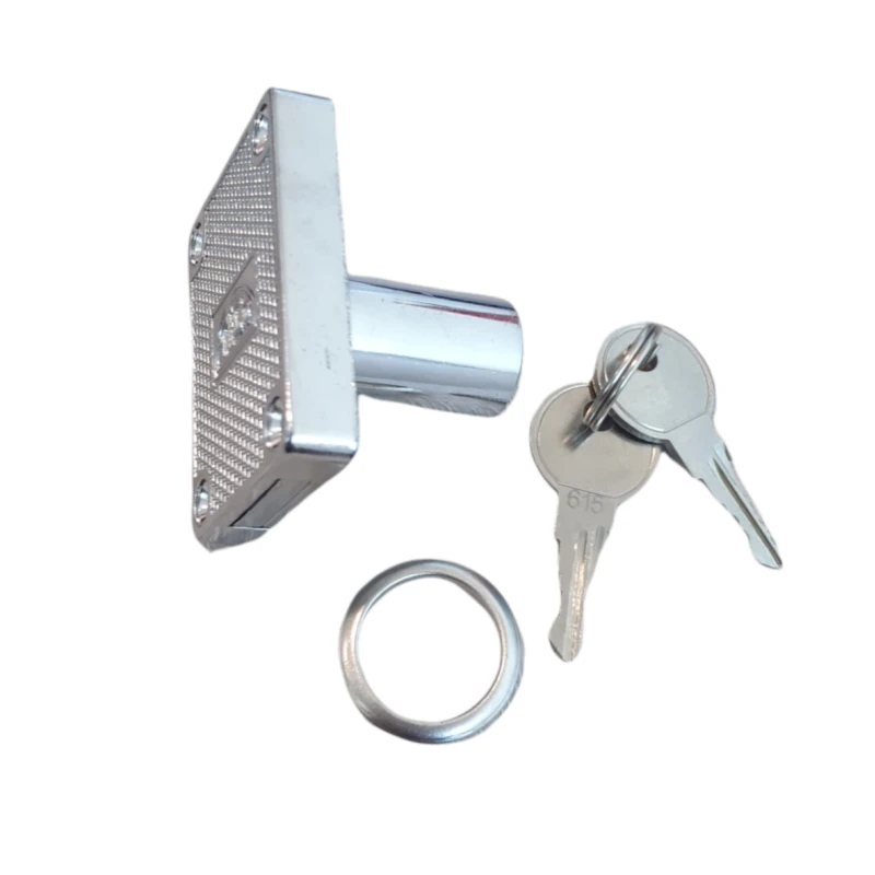 Serrure en métal finition nickel brillant pour montage à droite, à gauche ou au centre.