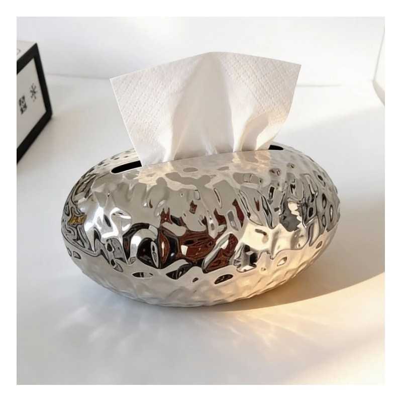 BOÎTE À MOUCHOIRS DÉCORATIVE OVALE - ARGENT