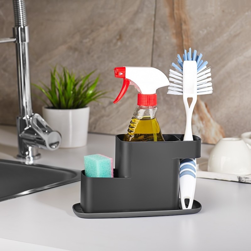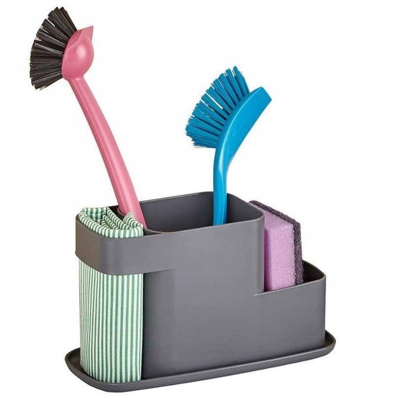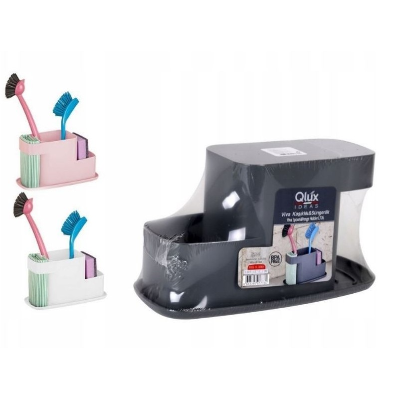 -Pratique et esthétique, équipé d'un égouttoir. Parfait pour une éponge, une brosse et du liquide vaisselle.