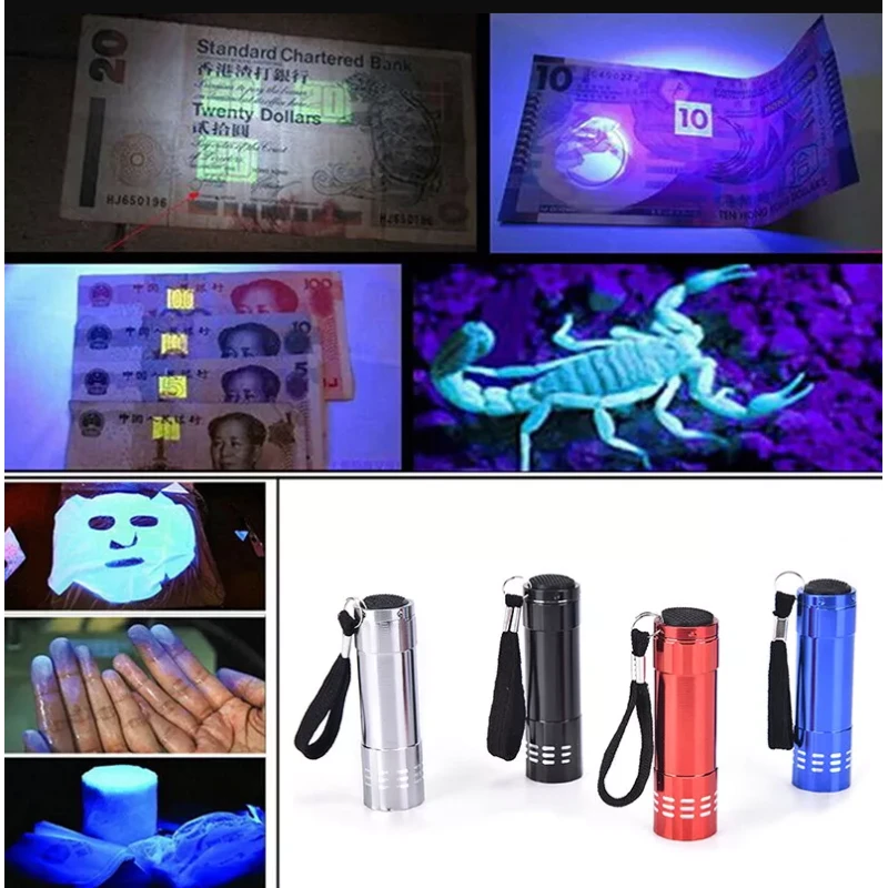 Avec ses 9 LED UV puissantes, cette mini torche est idéale pour vérifier les faux billets, détecter les taches invisibles ou les traces d’animaux.