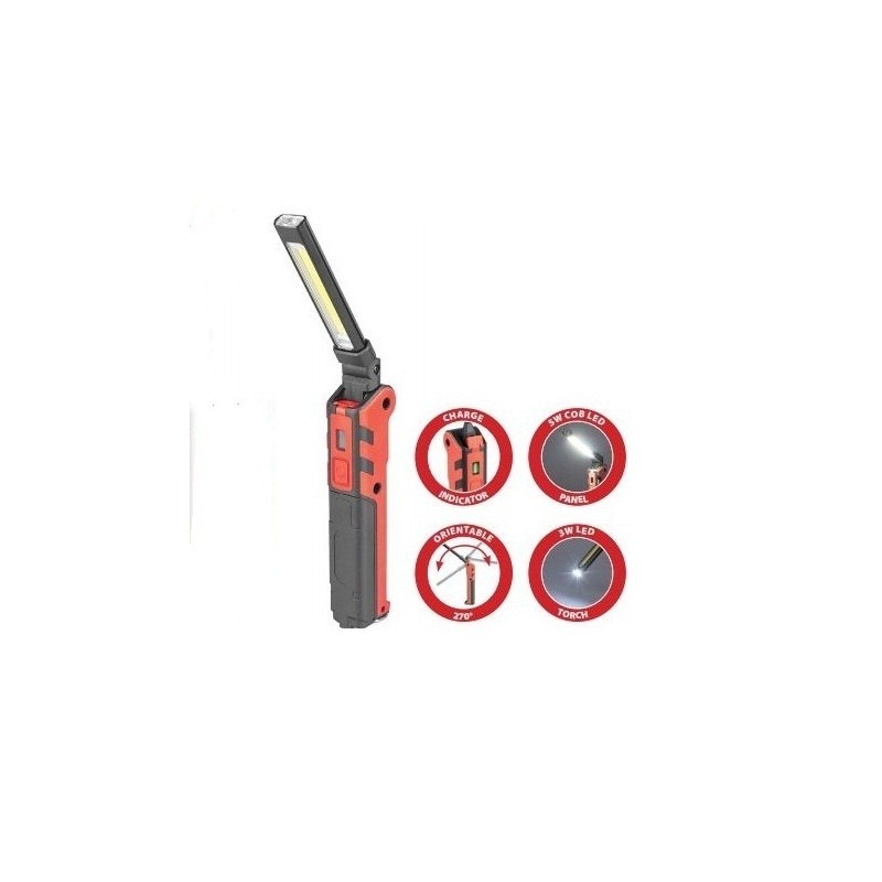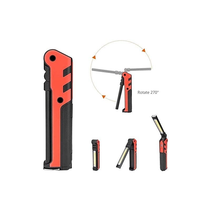 Lampe de travail 2 en 1 : la lumière COB 5W frontale est une puissante lumière de travail blanche qui sert à éclairer une grande zone. La lampe torche LED est équipée de LED haute puissance 3 W, idéale pour une utilisation comme phare pour éclairer sur de longues distances. Rotation à 270 ° : la lampe de travail peut être pliée ou tournée avec un angle de rotation maximum de 270 degrés. Elle est donc en mesure de fournir un éclairage à plusieurs angles. Excellent pour la réparation de voiture, éclairage domestique, coupure de courant, urgence... Rechargeable : la lampe intègre une batterie Li-ion rechargeable 3,7 V 2000 mAh (type 18650). Livrée avec un câble micro USB pour la charge. Aimant et crochet : la lampe possède un aimant puissant et un crochet de suspension. Ils vous permettront de la fixer sur une surface métallique ou de l'aplatir pour laisser les mains libres pour faire d'autres travaux. Matériau durable : corps en aluminium de haute qualité qui dissipe efficacement la chaleur, prolonge la durée de vie de la lampe. Design compact. Facile à transporter et à ranger. Pratique à utiliser : vous pouvez utiliser la lampe torche électrique pour la maison, le travail, le camping, en cas d'urgence...
