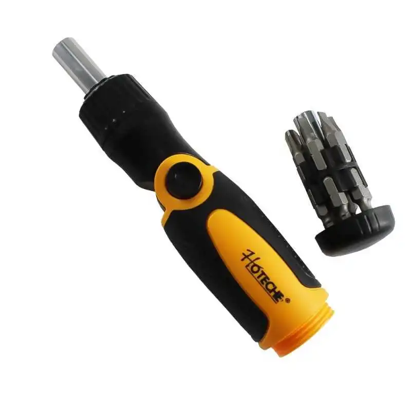 -Tournevis à main à cliquet avec un jeu d'embouts à l'intérieur de la poignée conçu pour un usage professionnel et domestique