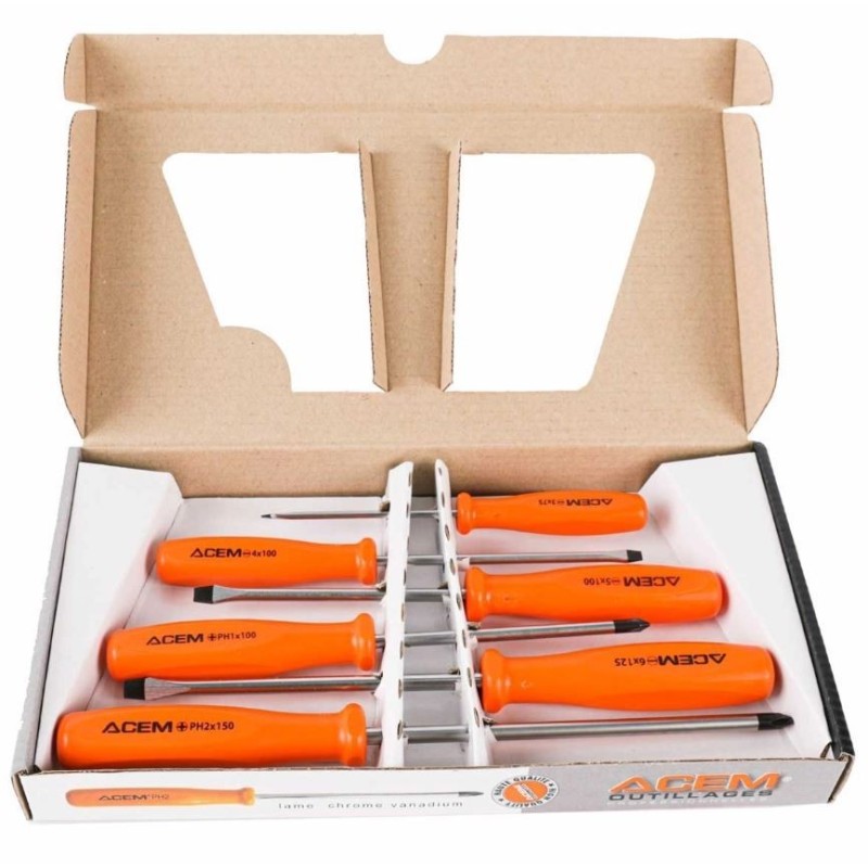 Composition :4 tournevis français (3*75/4*100/5*100/6*125) / 2 tournevis américains ( ph1*100/ph2*150)