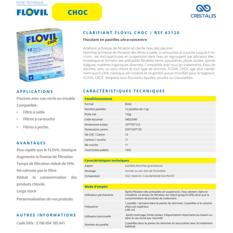 CLARIFIANT DE PISCINE 12 PASTILLES FLOVIL CHOC