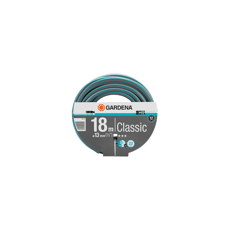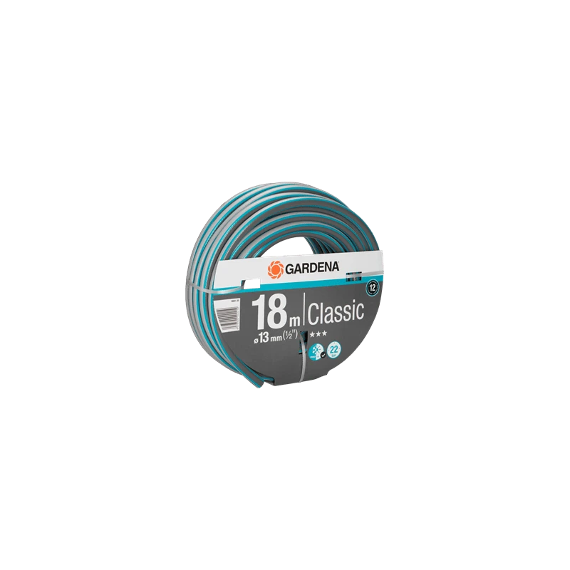 -Le tuyau Classique 13 mm (1/2") de GARDENA mesure 18 m de long avec un diamètre de tuyau de 13 mm (1/2").