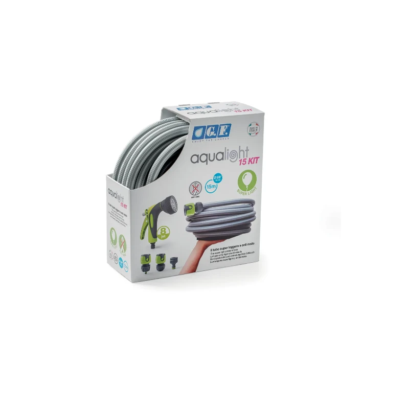 Aqua Light 15kit est le tuyau innovant, ultraléger et anti-nœud. Léger et facile à manipuler. Structure anti-torsion (ANTI-KINK).