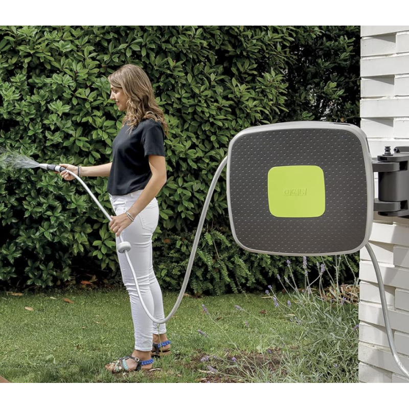 "Un arrosage sans encombrement ! Avec ses 35 mètres de portée et son enroulement automatique, votre jardin reste propre et organisé.