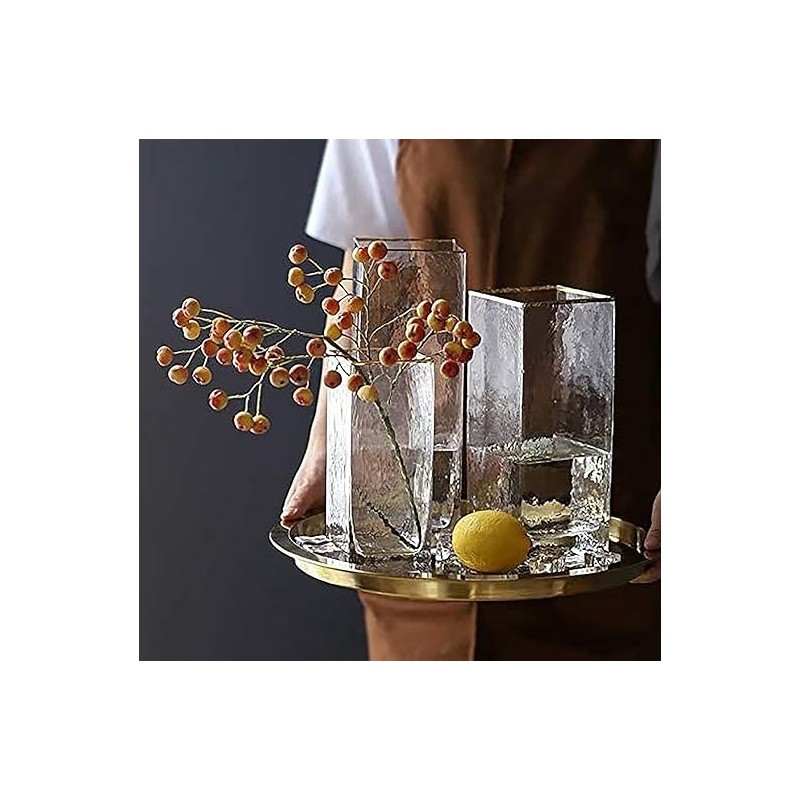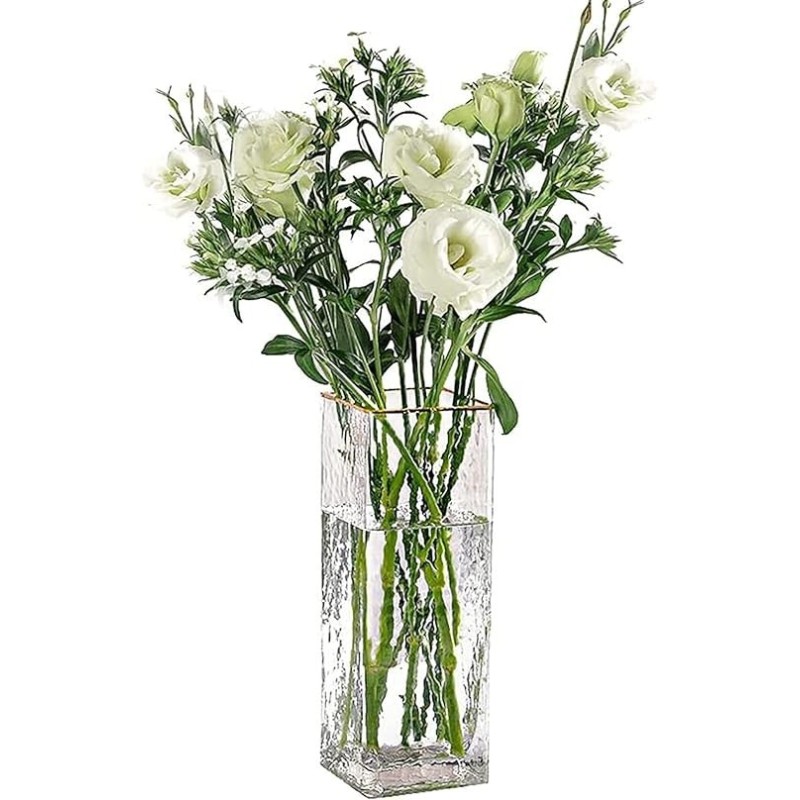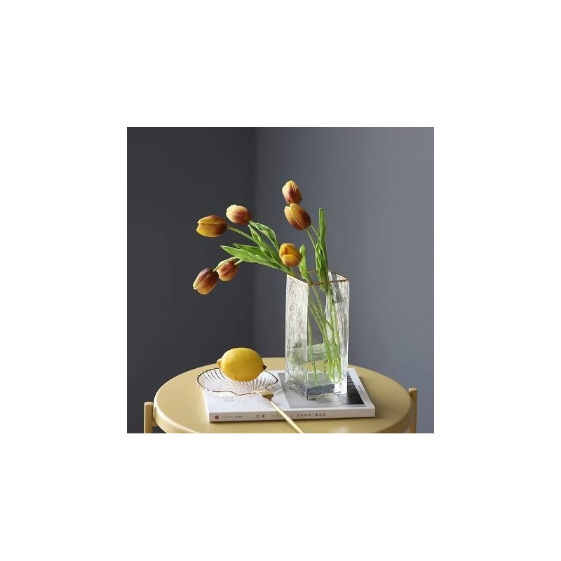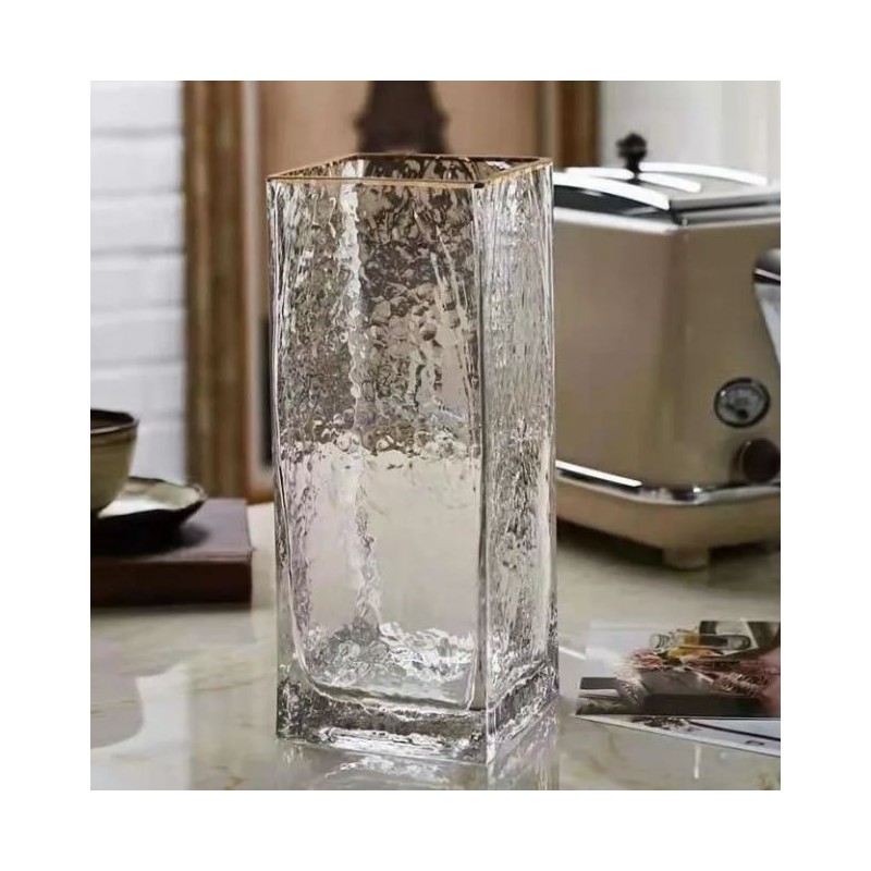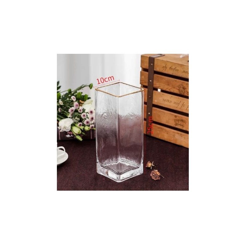 -Vase en Verre Transparent avec Bordure Dorée, Bouche Carrée, Décoration pour la Maison et le Salon