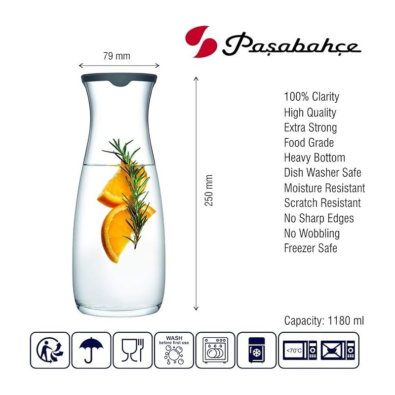 -Pasabahce a apporté cette belle carafe en verre élégante de style moderne pour vous permettre de stocker de l'eau, du jus, de l'huile et d'autres articles alimentaires liquides dans votre cuisine.