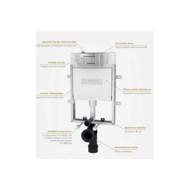 -Finies les installations encombrantes, le bâti support avec réservoir encastré de SOPAL est conçu pour répondre à vos exigences pratiques et économiques, ainsi qu’à toutes les contraintes de pose.